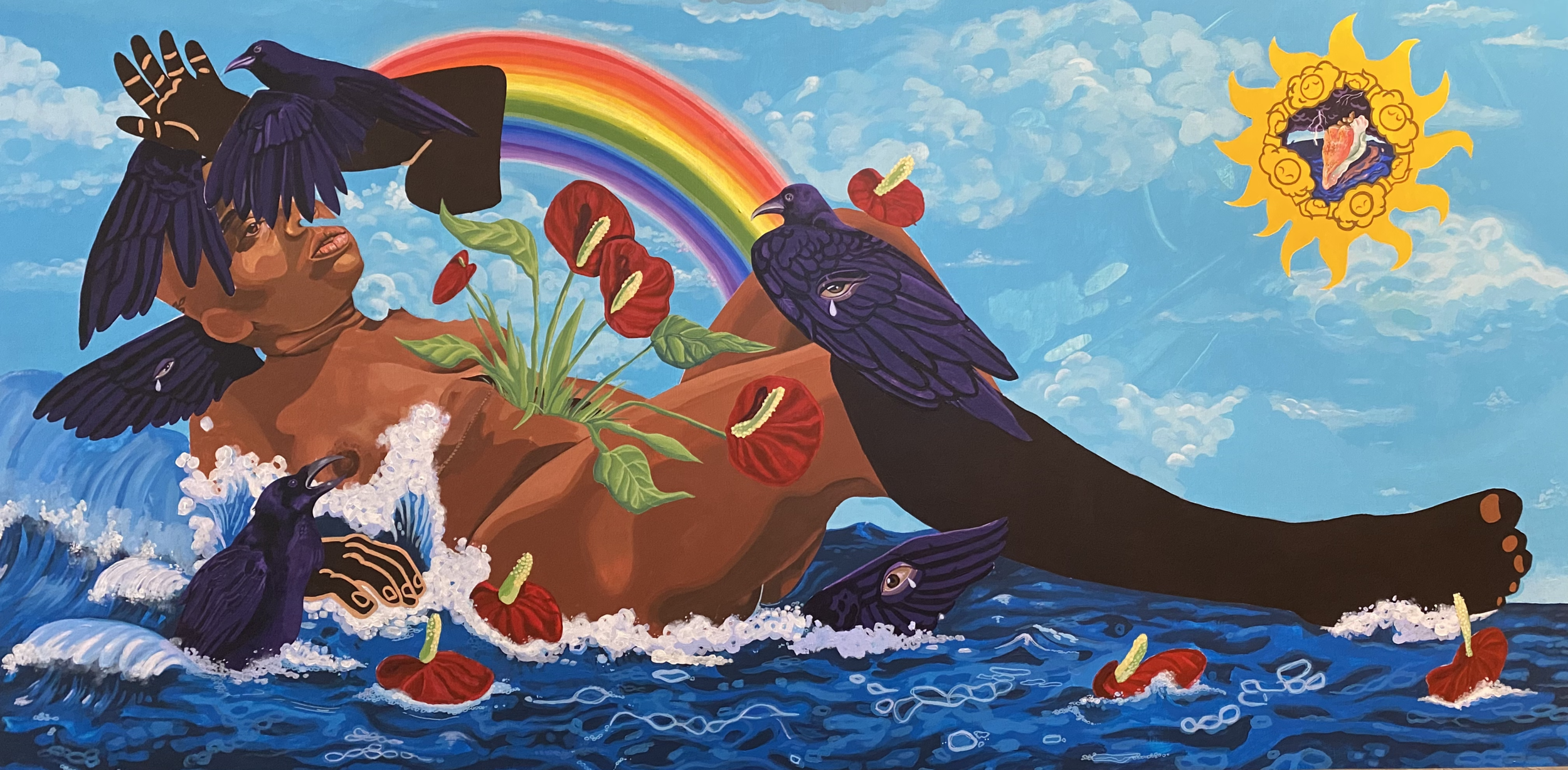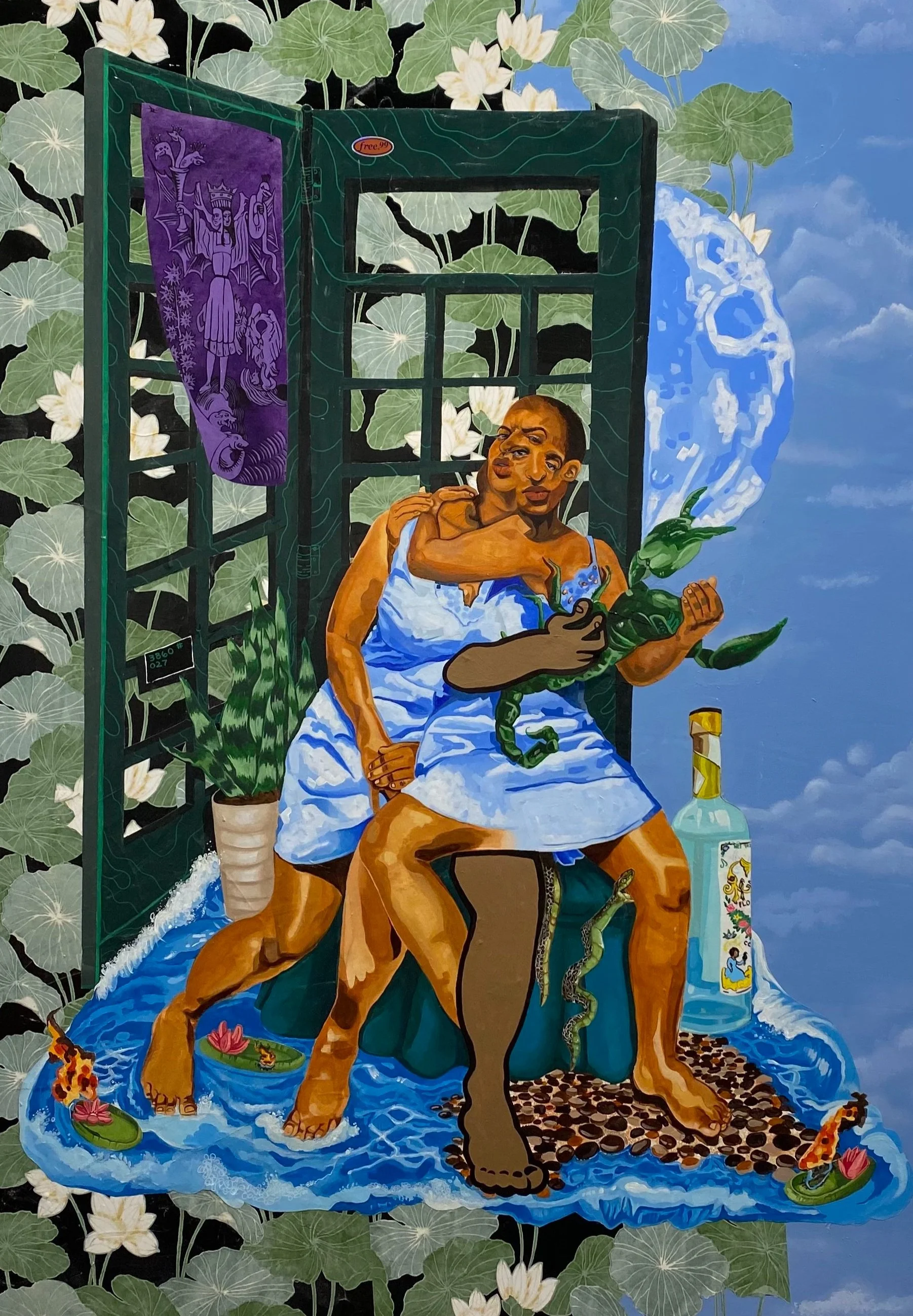 "Just Visiting” explores ideas of permanence in the scope of relationships, gender, and physical and spiritual transformations. I weave Christian alchemical symbols through the work’s narrative to illustrate transmuting iron into gold, a process paralleled to constructing a better self."